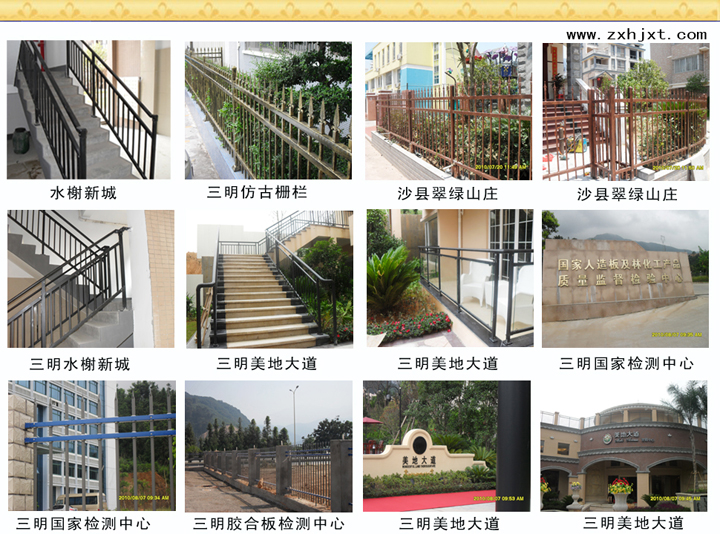 | 西安秦嶺山水 | 深圳華來利實業(yè)圣莫利斯 | 廣東梅州華僑城 | 中鐵一局深圳地鐵五號線的鐵路護(hù)欄 | 東莞長安第二人民法院宿舍樓的樓梯護(hù)欄 |